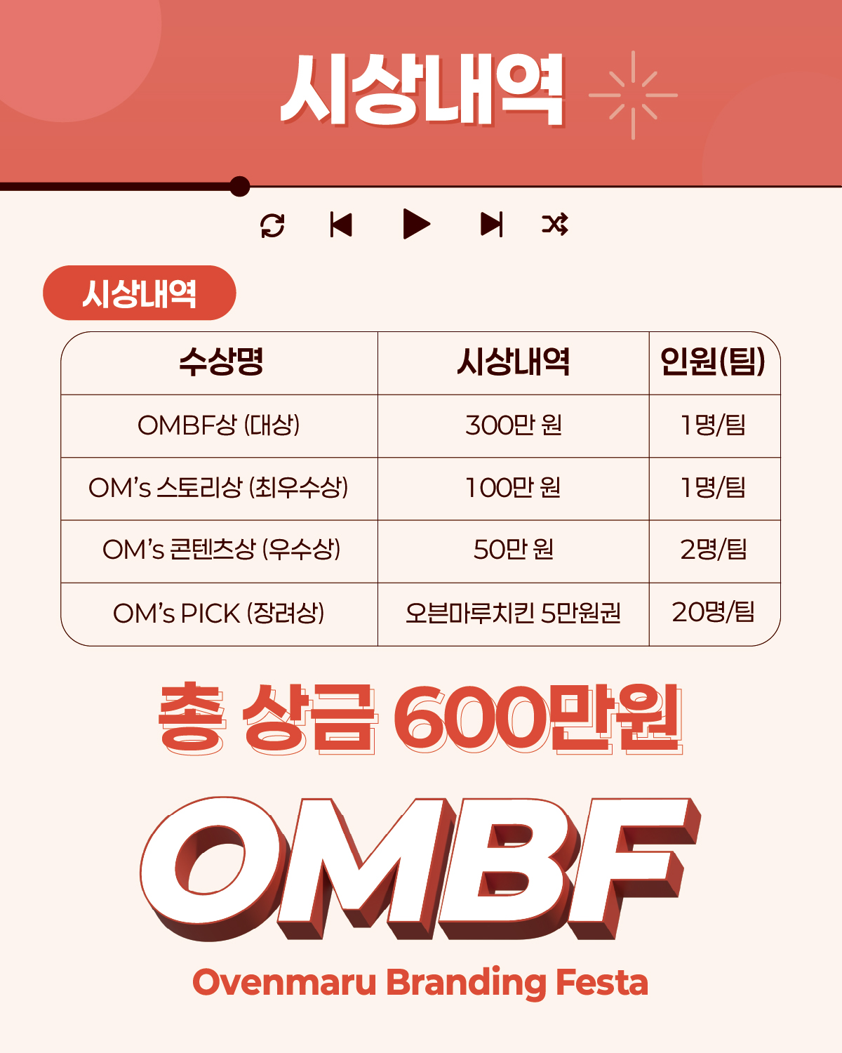 🏆 OMBF상(대상) : 300만 원 (1팀)