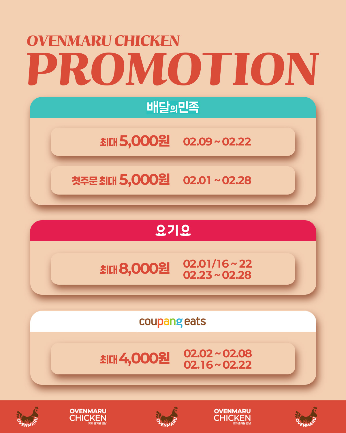 OVENMARU 소식 연휴 집콕엔? 오븐마루치킨! 🍗 | 📢 오븐마루치킨 2월 배달앱 할인 이벤트 2026.02.02
